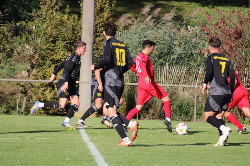 Vor einer stattlichen Kulisse von über 400 Zuschauern, waren die Gäste von Beginn an spielbestimmend und hatten daher sehr viel Ballbesitz. Das Team von Trainer Marcus Wenninger versuchte die Räume so eng wie möglich zu machen. Bis zur achten Minute ging dies auf, ehe Tim Ranzinger gegen Loris Maier den kürzeren zog und der SG Stürmer den Ball über Domenik Lück hinweg zum 0:1 ins Netz hob. Wenig später war es Rahn, der über den GSV Kasten schoss (13.). Die gelb/schwarzen kamen auf der Gegenseite auch zum ersten Abschluss, jedoch verfehlte Patrick Sirch das Gehäuse von der Strafraumkante um zwei Meter (16.). Im der 22. Minute klärte Kapitän Daniel Pfeiffer einen Kopfball von Nuraj nach einer Ecke auf der Torlinie und Celiktas köpfte knapp über die Querstange (28.). Das 0:2 war dann etwas strittig. Nach einer starken Parade von Lück gegen Rahn, köpfte Kleinschrodt die anschließende Flanke abseitsverdächtig in die Maschen (34.). Vor der Pause musste der GSV noch zwei weitere Gegentore schlucken, die von der SG gut heraus gespielt wurden. Schnell über die Außenspieler und nach abschließendem Querpass erhöhte zuerst Eisele auf 0:3 (38.), ehe Loris Maier den 0:4 Pausenstand herstellte (45+1.). Gleich nach dem Wechsel wehrte Lück klasse einen Kopfball von Kleinschrodt ab (48.). Eine Minute später klärte Lück gut gegen Eisele und beim Nachschuss von Eisele half Ihm der Pfosten. Die größte Möglichkeiten des GSV hatte Neuzugang Robin Slawig. Nach einem langen Einwurf verlängerte Ben Deyhle mit dem Kopf und Slawig´s Volleyschuss hielt SG Keeper Reule fest (57.). Mit seinem dritten Treffer stellte Loris Maier anschließend auf 0:5, als er eine Flanke völlig frei stehende mit dem Kopf versenkte (61.). Nachdem Kleinschrodt das nächste Tor verfehlte (64.), war es abermals Loris Maier der zum 0:6 traf – und wie! Eine abgewehrte Flanke nahm er aus 18 Metern volley und knallte die Kugel ins obere Dreieck (69.). Einen tollen Reflex zeigte Lück zwei Minute danach, als er ein Kopfball zur Ecke lenkte. Das 0:7 folgte jedoch kurz darauf, nachdem Rahn eine Flanke am zweiten Pfosten im kurzen Eck unterbrachte (72.). Die gelb/schwarzen gaben jedoch nicht auf und kämpften weiter um jeden Zentimeter. Leider musste man dennoch ein weiteres Gegentor hinnehmen. Eisele musste nach einem Konter nur noch die Kugel zum 0:8 Endstand über die Linie drücken. Den letzten Versuch hatte aber der GSV, doch Mirsad Vejselovic schlenzte die Kugel am Kasten vorbei (90.).