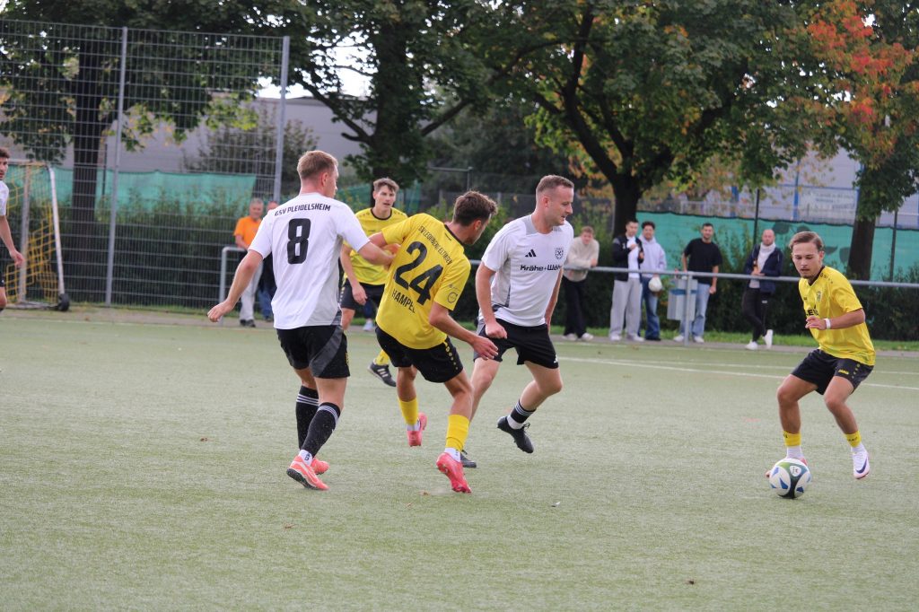 Im der ersten Hälfte hielten die gelb/schwarzen eine halbe Stunde gut mit und konnten die Partie ausgeglichen gestalten. Nach dem 0:1 Rückstand durch Ohmes in der 22. Minute, glich Kevin Sirch zum 1:1 aus. Nach einer Ecke verlängerte Aaron Hachmann die Kugel auf den zweiten Pfosten und der GSV Abwehrchef drückte den Ball über die Linie (30.). Doch vom Anpfiff weg antworteten die Gäste sofort mit dem 1:2 Treffer durch Hofmann (31.). Das darf dem GSV Team so nicht passieren. Es wurde bis zur Pause jedoch noch schlimmer. Überfallartig kamen die Gäste über die Außenpositionen gegen die GSV Dreierabwehrreihe zu Chancen und den Toren drei und vier. Beider Treffer erzielte abermals Ohmes ( 38./44.). Wer dachte die gelb/schwarzen würden sich im zweiten Abschnitt aufbäumen, der sah sich getäuscht. Viel zu wenig kam vom Team von Trainer Marcus Wenninger. Bis auf zwei Möglichkeiten zum Ende der Partie gab es auf Seiten des GSV nicht. In der 75. Minute markierte Ohmes mit seinem Viererpack den 1:5 Endstand.