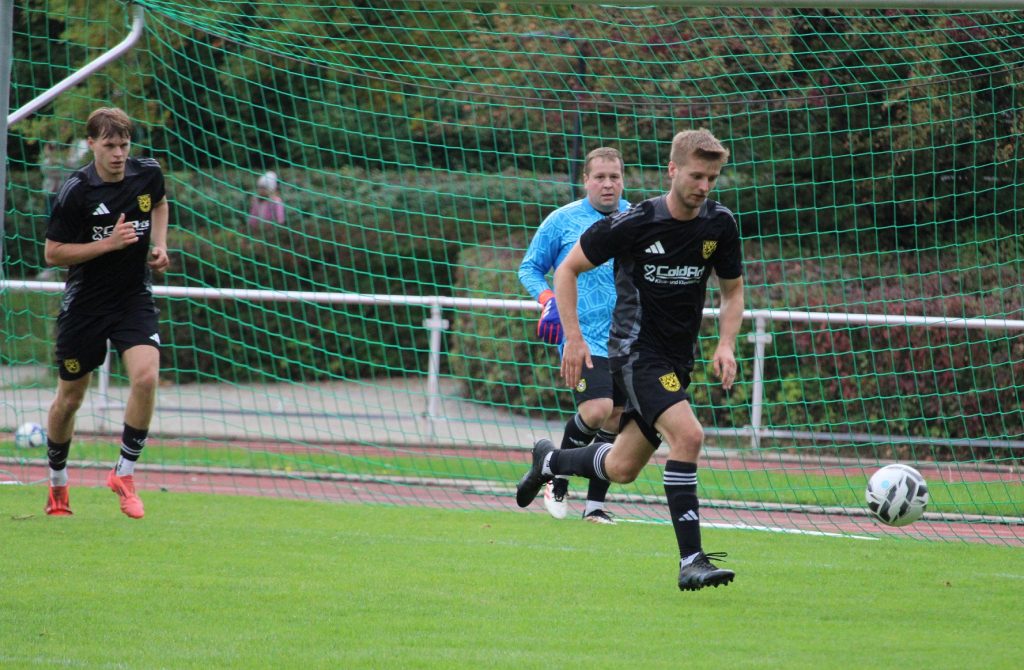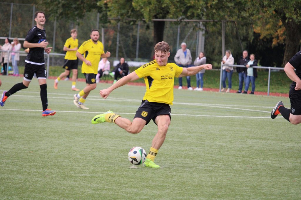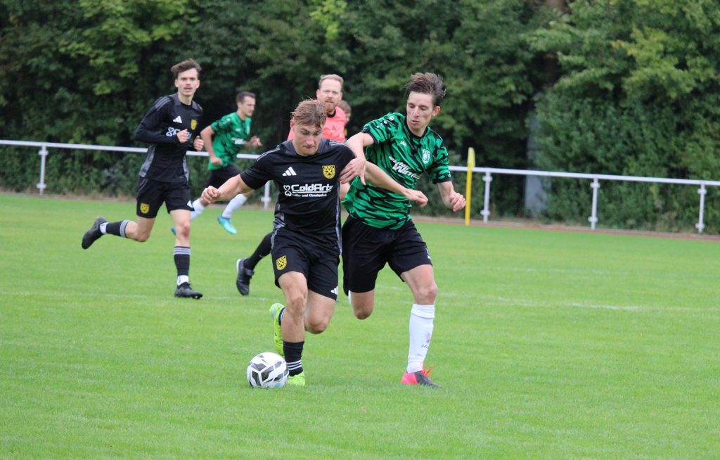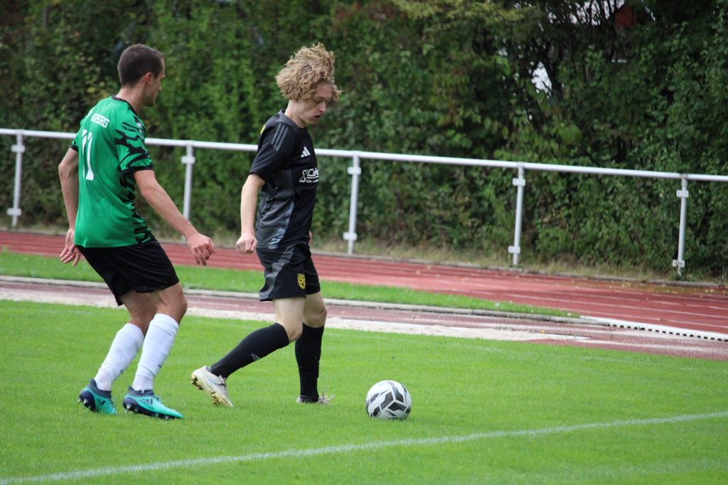 Das Team von Trainer Heiko Bürger feierte nicht nur den sechsten Sieg im siebten Saisonspiel, sondern auch den Derbysieg gegen den FC Marbach II. Schon nach sieben Minuten brachte Maximilian Singer die gelb/schwarzen mit 1:0 in Front. Diese baute Lars Theurer in der 38. Minute auf 2:0 aus. Mit dem Pausenpfiff verkürzten die Gäste durch einen umstrittenen Elfmeter auf 2:1 (45.). Nach einem Foul an L. Theurer, verwandelte Daniel Maier den anschließenden Strafstoß sicher oben rechts zum 3:1 Endstand. Danach hatte der eingewechselte Lukas Klein noch zwei weitere Chancen zu erhöhen, doch zuerst traf er nach einem Freistoß nur die Latte (63.) und drei Minuten später scheiterte er aussichtsreich am Torwart.