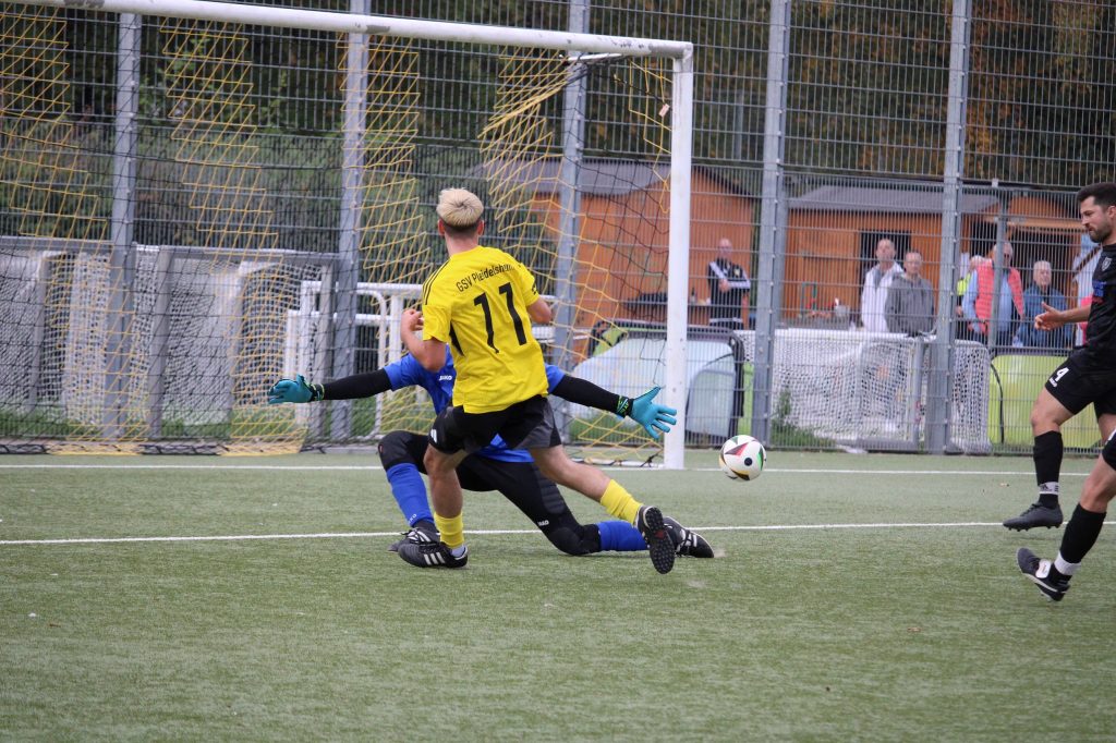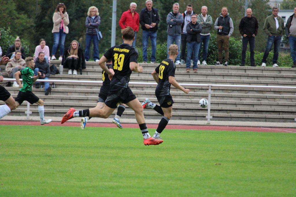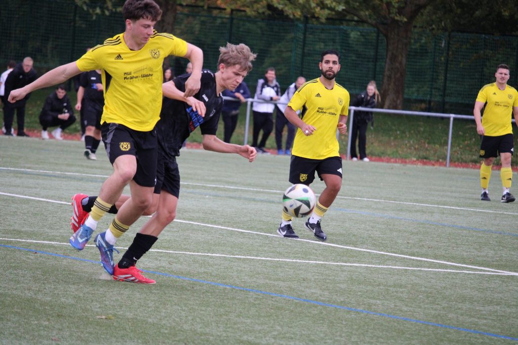 Im ersten Abschnitt tat man sich noch schwer und zur Krönung unterlief Kevin Strokis ein unglückliches Eigentor zum 0:1 Pausenstand (42.). Lange lief das Team von Trainer Sascha Ebert dem Rückstand hinterher. Erst in der 83. Minute konnte Mats Tutsch zum 1:1 ausgleichen. Nun wollte man auch den Dreier und der bot sich dann auch in der 89. Minute, als es Elfmeter für die gelb/schwarzen gab. Der eingewechselte Till Tutsch trat zum Strafstoß an und verwandelte zum 2:1 Endstand.