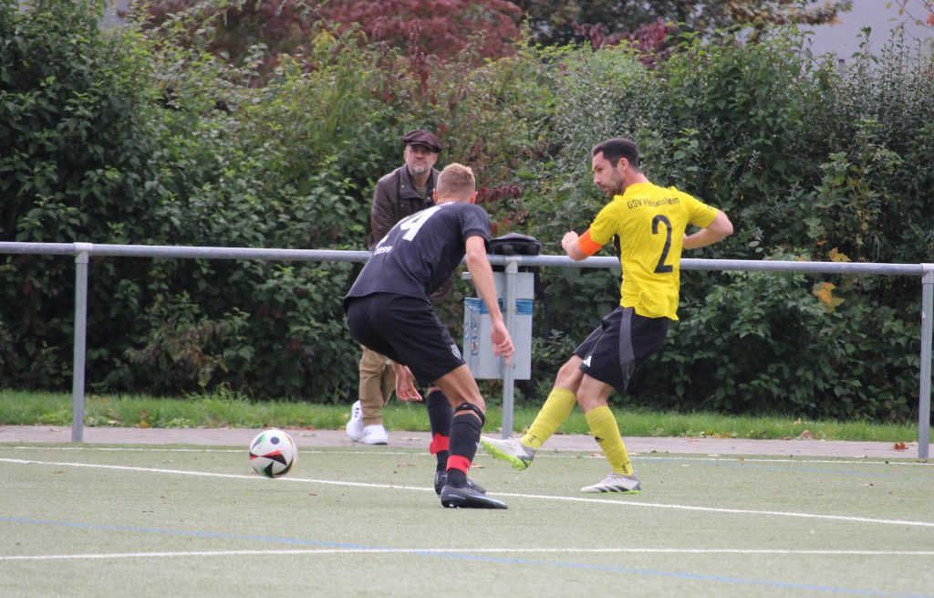 Durch einen hart umkämpften 4:2 Arbeitssieg gegen die italienische Mannschaft aus Großbottwar, bleibt der GSV II an der Tabellenspitze. Das Team von Trainer Heiko Bürger lag nach elf Minuten mit 0:1 in Rückstand. Doch der in den letzten Wochen gut aufgelegte und treffsichere Bilal Bitmez glich in der 38. Minute zum 1:1 aus. Doch mit dem Halbzeitpfiff, kassierte man den erneuten Rückstand zum 1:2. Aber wie schon in Halbzeit eins, glich erneut Bitmez aus und es stand 2:2 (63.). Anschließend schwächten sich die Gäste durch Undiszipliniertheiten selbst und verloren zwei Spieler mit der roten Karte. Lange taten sich die gelb/schwarzen schwer und spielten zu unüberlegt die Überzahl aus. Erst in der Schlussphase gelang wieder Bitmez nach einer Flanke durch einen Kopfballaufsetzer die vielumjubelte 3:2 Führung (88.). Den Deckel drauf machte zwei Minuten später Lars Theurer, der den 4:2 Endstand herstellte (90.).
