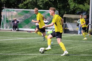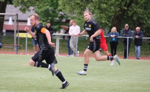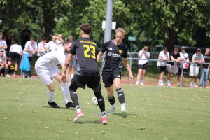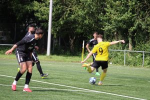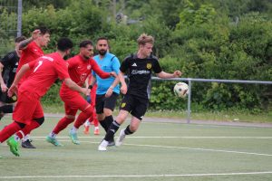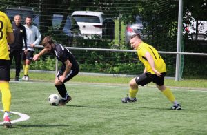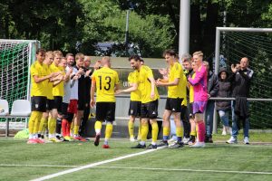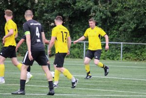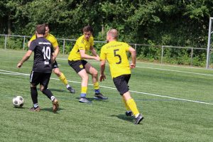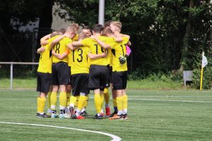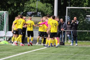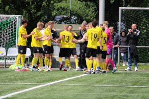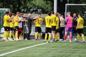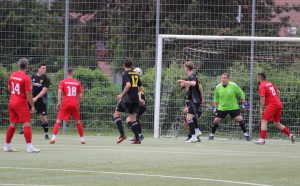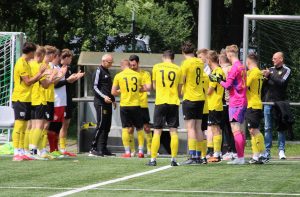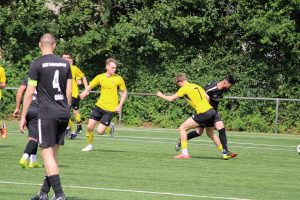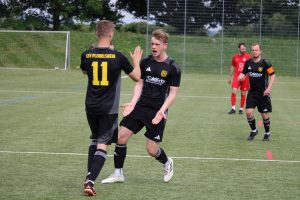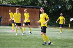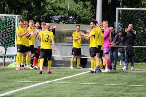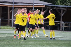 Im ersten Abschnitt tat man sich noch schwer und zur Krönung unterlief Kevin Strokis ein unglückliches Eigentor zum 0:1 Pausenstand (42.). Lange lief das Team von Trainer Sascha Ebert dem Rückstand hinterher. Erst in der 83. Minute konnte Mats Tutsch zum 1:1 ausgleichen. Nun wollte man auch den Dreier und der bot sich dann auch in der 89. Minute, als es Elfmeter für die gelb/schwarzen gab. Der eingewechselte Till Tutsch trat zum Strafstoß an und verwandelte zum 2:1 Endstand.