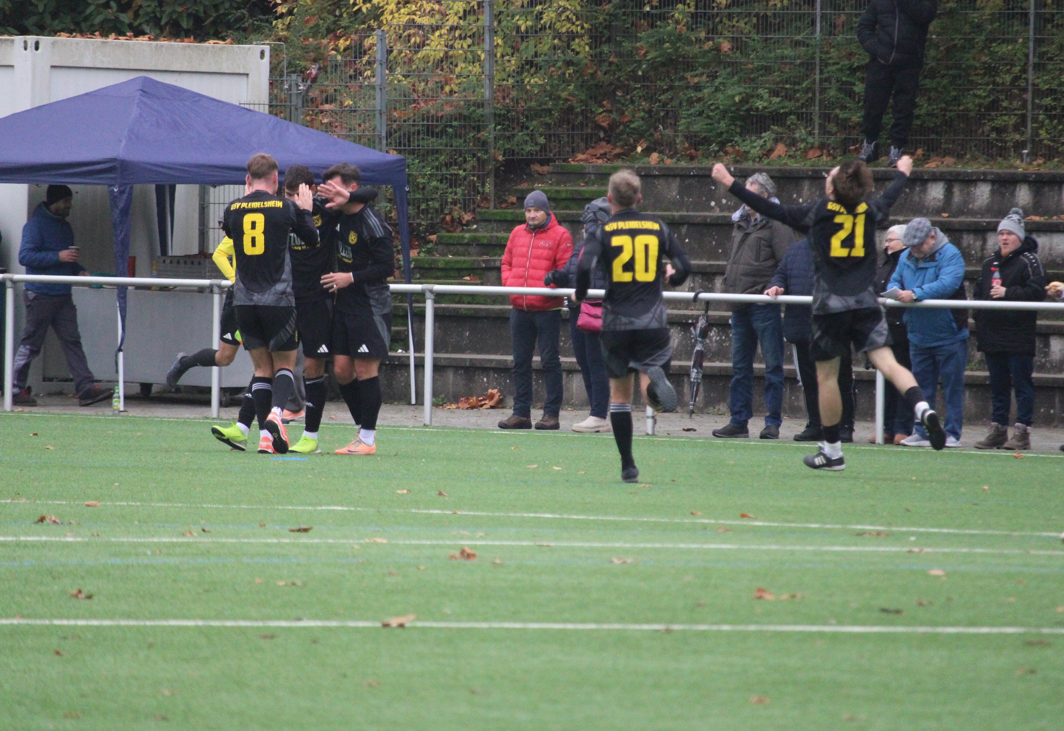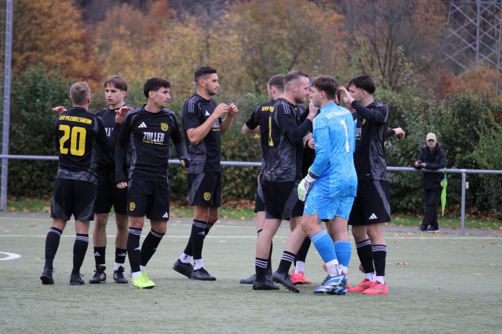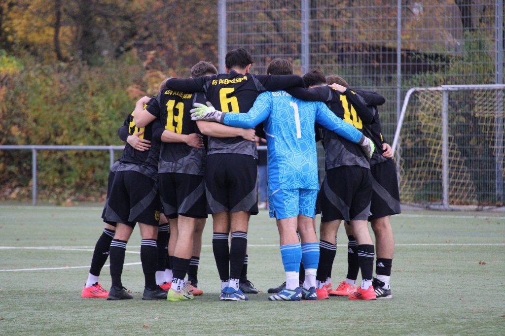 Als der Schlusspfiff auf dem Pleidelsheimer Sportgelände erklang, brandete großer Jubel auf, gemischt aber auch mit enormer Erleichterung. Der knappe Sieg, der auch höher hätte ausfallen müssen, war nicht glücklich. Ganz im Gegenteil, zeigte die gesamte Mannschaft eine Riesenpartie. Es wurde um jeden Zentimeter gekämpft, war super aggressiv und spielte auch noch sehr gefällig nach vorne. Schon nach drei Minuten die erste Möglichkeit für die gelb/schwarzen, doch nach Vorarbeit von Jan Schlipf, scheiterte Patrick Sirch am Gästekeeper. Den Abpraller setzte Robin Slawig volley am Kasten vorbei. Anschließend verfehlten Schlipf (6.) und Slawig mit Ihren Abschlüssen haarscharf das Gehäuse (12.). Die Gäste schienen etwas überrascht über die forsche Anfangsphase des GSV. Nach einem Freistoß hatte die SG die erste Chance, jedoch war GSV Torwart Domenik Lück auf dem Posten und wehrte stark ab (14.). Wenig später dann fast der Führungstreffer für den GSV, nachdem Robin Bender Stürmer P. Sirch einsetzte, der aus 18 Metern leider nur den Pfosten traf (19.). Danach gab es bei den gelb/schwarzen eine kleine Auszeit und die Partie beruhigte sich. In der 37. Minute dann der zweite Abschluss der Gäste, den Lück im GSV Tor sicher halten konnte. Vor der Pause noch ein ruhender Ball für den GSV aber Slawig setzte Ihn über den Kasten (40.). Nur zwei Minuten waren im zweiten Abschnitt absolviert, als der entscheidende Treffer fallen sollte. GSV Kapitän Pfeiffer kam kurz vor der 16er Linie an den Ball, ließ sein Gegenspieler ausstiegen und schoss die Kugel wunderbar aus 19 Metern mit links unter die Latte zum 1:0. Der GSV blieb im Anschluss weiter druckvoll und presste die Gäste früh in Ihre Hälfte. Die Schorndorfer machten dadurch Fehler im Aufbau, doch zweimal Bender (54./64.) und Slawig (70.) konnten dies nicht ausnutzen und scheiterten am Gästekeeper Aydin. Kurz darauf waren die Gäste ein Mann weniger, als Gashi mit gelb/rot den Platz verlassen musste (75.). Nach einem Konter war Bender frei durch, doch wieder war Aydin zur Stelle und bekam gerade noch den Fuß dran (78.). Auch beim Weitschuss des eingewechselten Tim Ranzinger war Aydin zur Stelle, wenn auch nur im Nachfassen (84.). Auf der Gegenseite rettete dann GSV Keeper Lück den knappen Vorsprung, nachdem er den satten Versuch von Vulcano überragend abwehrte (86.). In den letzten Minuten der Partie gab es für den GSV noch weitere gute Gelegenheiten nach Kontern. Doch weder Constance Igwe (90.) noch Ranzinger (90+1.), trafen zur Entscheidung. Die letzte Chance hatte P. Sirch, der sich nach einem langen Schlag von Lück super durch setzte aber mit seinem tollen Aussenristschuss am Reflex von Aydin scheiterte (90+3.).