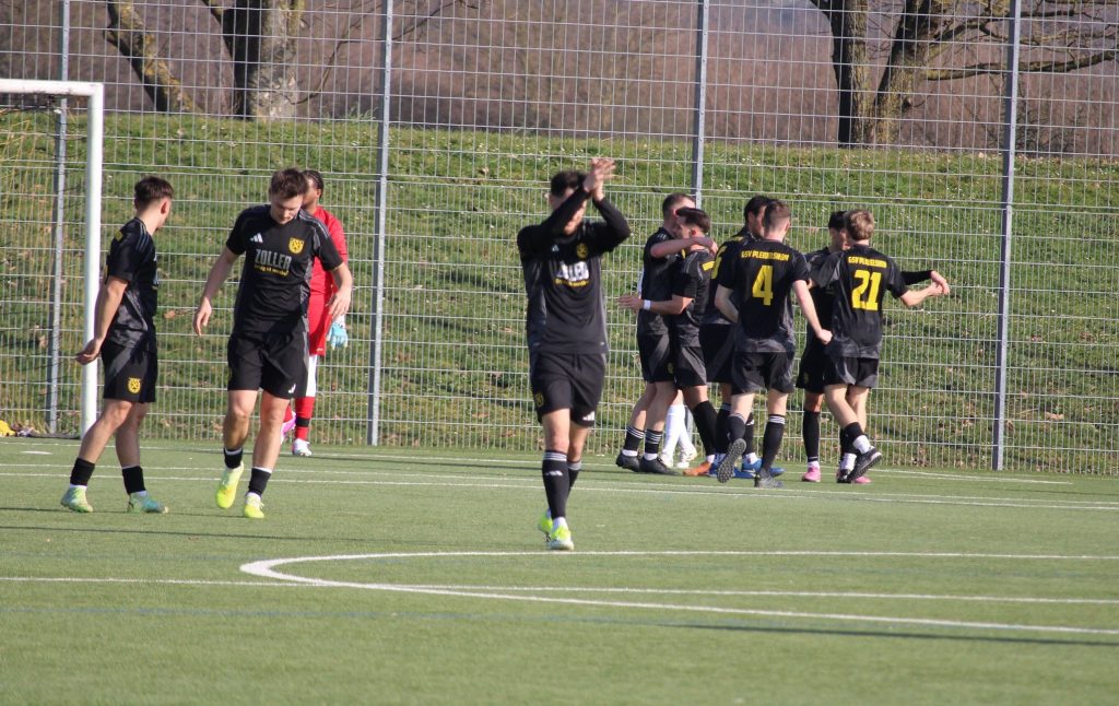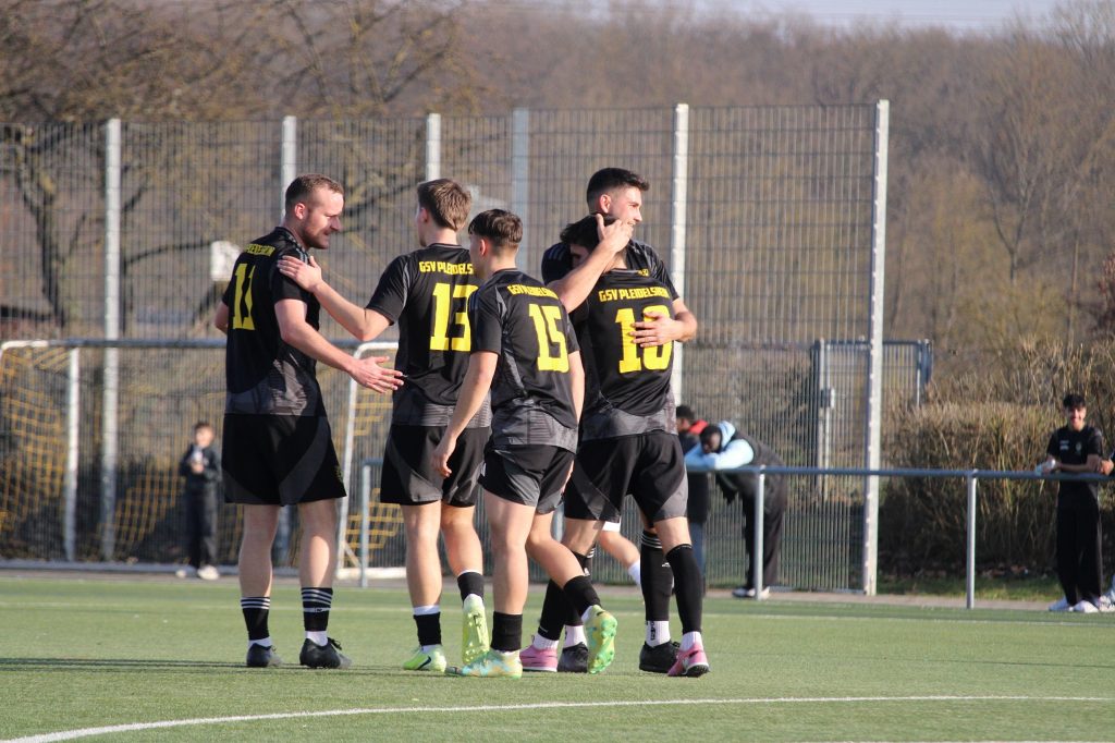 Als der Schlusspfiff auf dem Pleidelsheimer Sportgelände erklang, brandete großer Jubel auf, gemischt aber auch mit enormer Erleichterung. Der knappe Sieg, der auch höher hätte ausfallen müssen, war nicht glücklich. Ganz im Gegenteil, zeigte die gesamte Mannschaft eine Riesenpartie. Es wurde um jeden Zentimeter gekämpft, war super aggressiv und spielte auch noch sehr gefällig nach vorne. Schon nach drei Minuten die erste Möglichkeit für die gelb/schwarzen, doch nach Vorarbeit von Jan Schlipf, scheiterte Patrick Sirch am Gästekeeper. Den Abpraller setzte Robin Slawig volley am Kasten vorbei. Anschließend verfehlten Schlipf (6.) und Slawig mit Ihren Abschlüssen haarscharf das Gehäuse (12.). Die Gäste schienen etwas überrascht über die forsche Anfangsphase des GSV. Nach einem Freistoß hatte die SG die erste Chance, jedoch war GSV Torwart Domenik Lück auf dem Posten und wehrte stark ab (14.). Wenig später dann fast der Führungstreffer für den GSV, nachdem Robin Bender Stürmer P. Sirch einsetzte, der aus 18 Metern leider nur den Pfosten traf (19.). Danach gab es bei den gelb/schwarzen eine kleine Auszeit und die Partie beruhigte sich. In der 37. Minute dann der zweite Abschluss der Gäste, den Lück im GSV Tor sicher halten konnte. Vor der Pause noch ein ruhender Ball für den GSV aber Slawig setzte Ihn über den Kasten (40.). Nur zwei Minuten waren im zweiten Abschnitt absolviert, als der entscheidende Treffer fallen sollte. GSV Kapitän Pfeiffer kam kurz vor der 16er Linie an den Ball, ließ sein Gegenspieler ausstiegen und schoss die Kugel wunderbar aus 19 Metern mit links unter die Latte zum 1:0. Der GSV blieb im Anschluss weiter druckvoll und presste die Gäste früh in Ihre Hälfte. Die Schorndorfer machten dadurch Fehler im Aufbau, doch zweimal Bender (54./64.) und Slawig (70.) konnten dies nicht ausnutzen und scheiterten am Gästekeeper Aydin. Kurz darauf waren die Gäste ein Mann weniger, als Gashi mit gelb/rot den Platz verlassen musste (75.). Nach einem Konter war Bender frei durch, doch wieder war Aydin zur Stelle und bekam gerade noch den Fuß dran (78.). Auch beim Weitschuss des eingewechselten Tim Ranzinger war Aydin zur Stelle, wenn auch nur im Nachfassen (84.). Auf der Gegenseite rettete dann GSV Keeper Lück den knappen Vorsprung, nachdem er den satten Versuch von Vulcano überragend abwehrte (86.). In den letzten Minuten der Partie gab es für den GSV noch weitere gute Gelegenheiten nach Kontern. Doch weder Constance Igwe (90.) noch Ranzinger (90+1.), trafen zur Entscheidung. Die letzte Chance hatte P. Sirch, der sich nach einem langen Schlag von Lück super durch setzte aber mit seinem tollen Aussenristschuss am Reflex von Aydin scheiterte (90+3.).