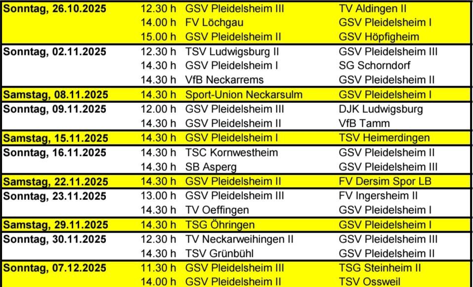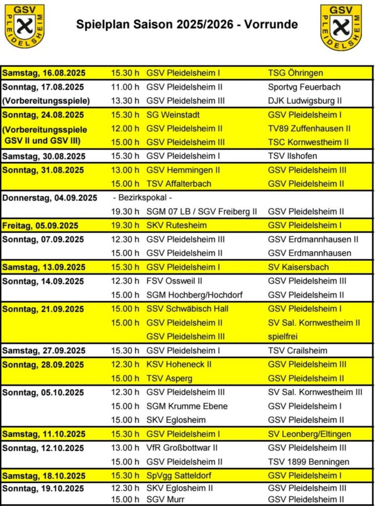 Spielplan GSV I, GSV II und GSV III Saison 2025/2026
